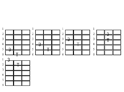 Como já mencionado em lições anteriores, a principio não é necessária a memorização dos acordes, uma vez que é possível aprender a construi-los a partir de algumas regras básicas, regras estas que também já analisamos. Vimos, por exemplo, que os acordes são formados fundamentalmente pelo I, III e V graus das escalas (com as devidas variações para formar acordes maiores, menores, diminutos, etc). Do ponto de vista prático é, portanto, interessante montar-se um mapa do braço da guitarra que permita mostrar a localização relativa de cada uma das notas básicas que compõem cada tom. Pode-se iniciar com as relações entre a tônica e o III grau. Observe: