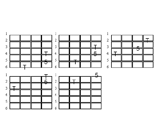 Da mesma forma que com as terças, as relações entre a tônica e as quintas (V grau) são as mesmas ao longo de todo o braço da guitarra. Exercite-se tocando o mapa completo de tônicas e quintas a partir de qualquer região do braço do instrumento. Use as diferentes notas (C, D, E, etc) como tônicas.